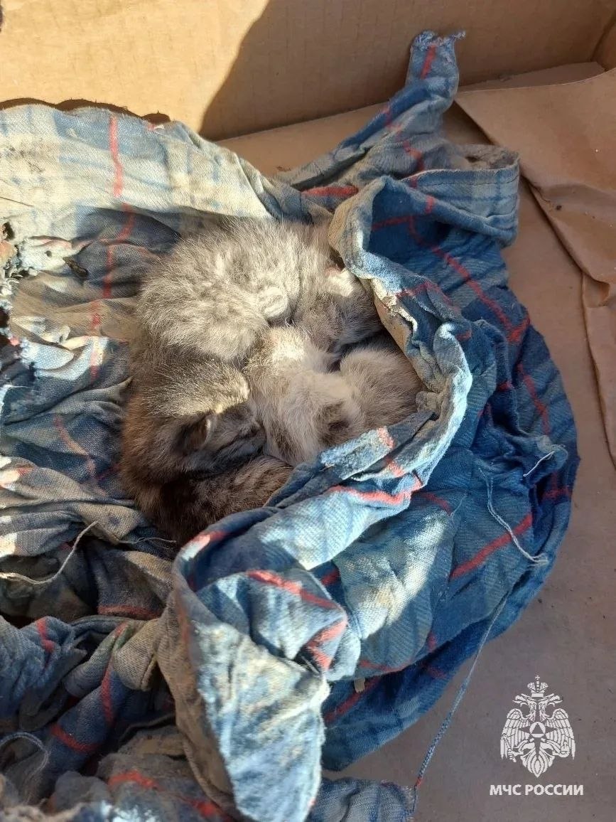 Еще совсем крошечных малышей нашли под разобранной крышей в селе Адильотар. Спасатели планируют забрать их с собой в Тульскую область, сообщили в МЧС региона.
