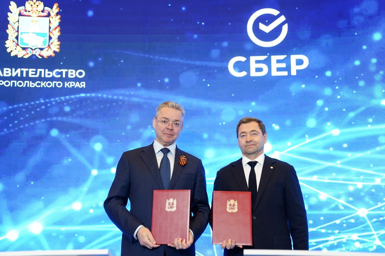 На Кавказском инвестиционном форуме правительство Ставрополья и ПАО «Сбербанк России» заключили соглашение о сотрудничестве — его подписали губернатор края Владимир Владимиров и председатель ЮгоЗападного банка «Сбербанка России» Анатолий Песенников. Документ нацелен на цифровизацию агропромышленного комплекса региона.