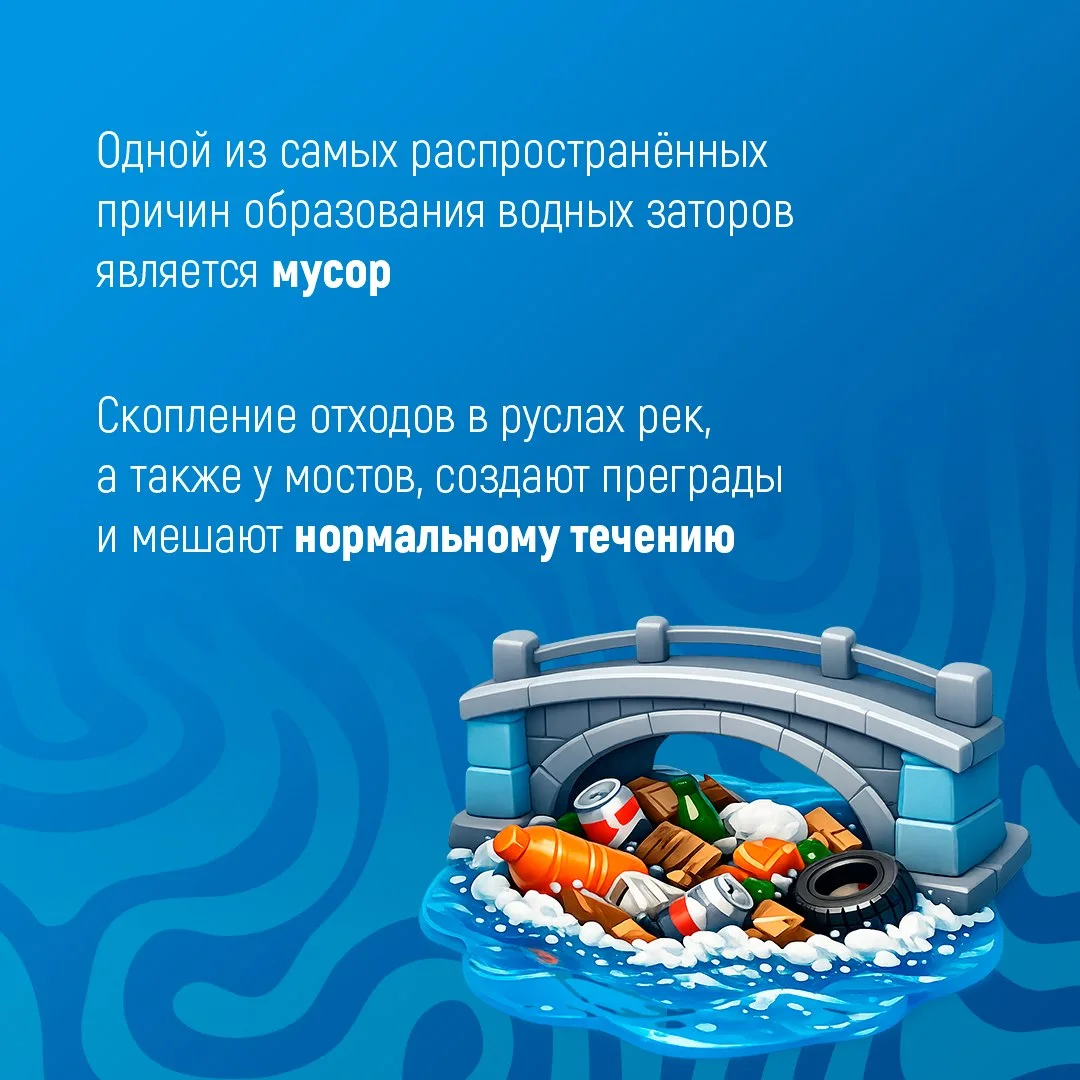 Водные заторы — это когда река или ручей вдруг начинает разливаться, затапливая всё вокруг. Это может привести к настоящим проблемам: от подтопления дорог и домов до разрушения мостов.