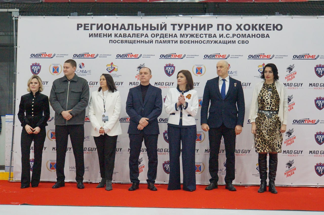 Церемонию открытия украсили показательные выступления фигуристов школы зимних видов спорта «Наследие», а первое символическое вбрасывание шайбы провела супруга героя Инна Романова — это стало по-настоящему трогательным моментом для всех присутствующих.