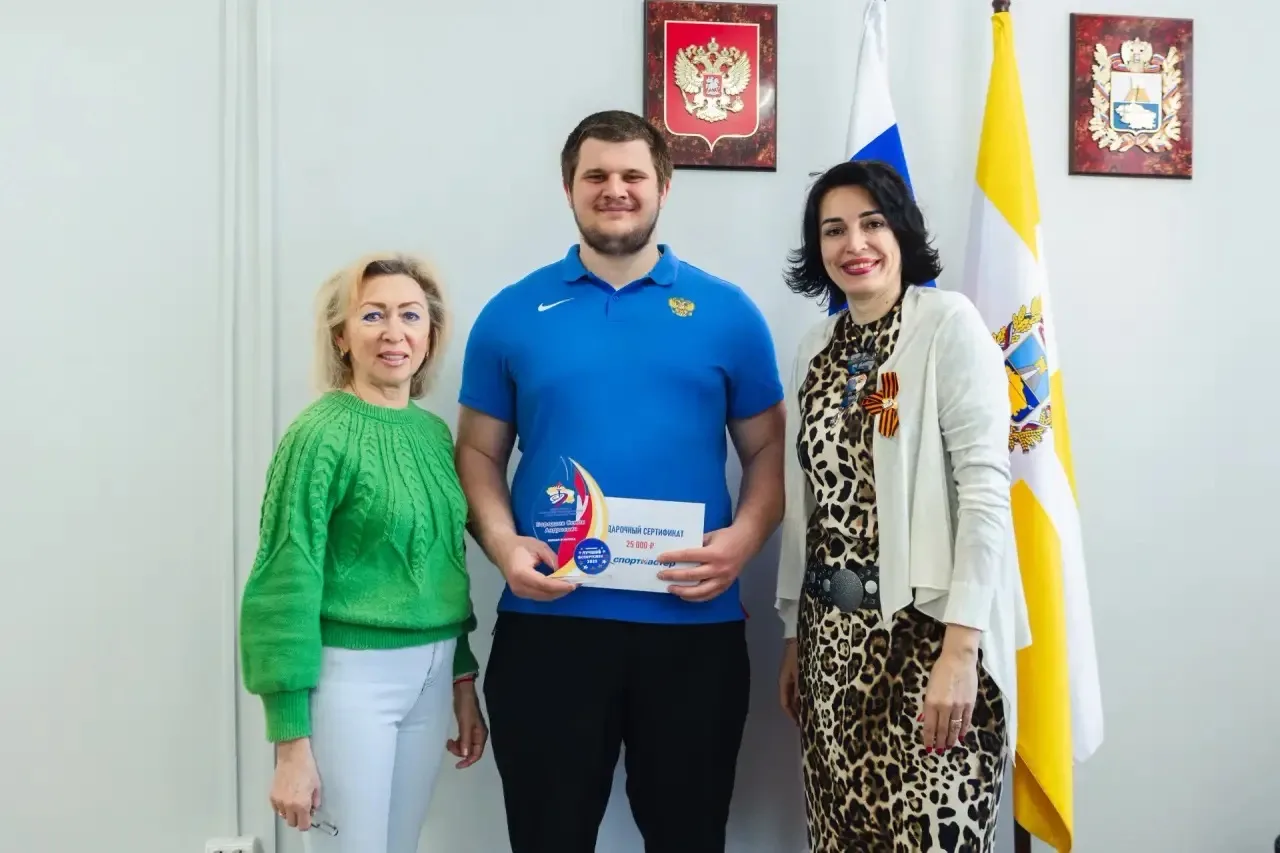 Министр физической культуры и спорта Ставропольского края Вероника Тайдакова вручила награду «Лучший спортсмен по итогам 2025 года» мастеру спорта России по легкой атлетике Семену Бородаеву.